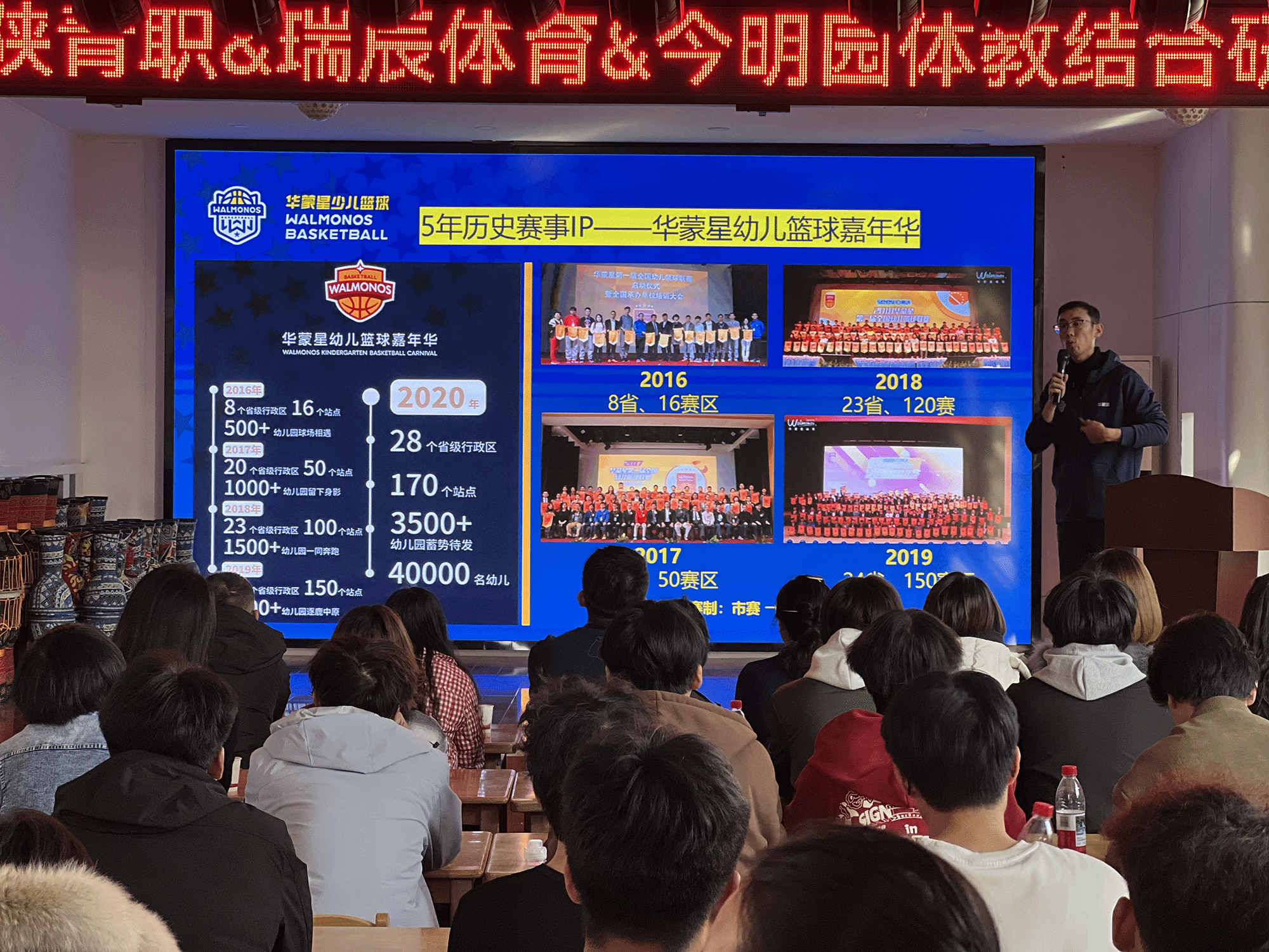 会上,王荣、张嘉伟分别代表企业和幼儿园对我系师生的到来表示欢迎,希望通过此次研讨活动,能够深化“校-企-园”的深度合作,进一步优化幼儿篮球课程的体系。王桢元从华蒙星的发展历史、业务范围、取得成绩、合作意向以及学生的实习就业等方面对企业的情况进行了详细的介绍,田亚男从培养目标、内容、方法和考核等方面对订单班培养计划进行了解读。双方就共建“华蒙星”订单班达成共识。